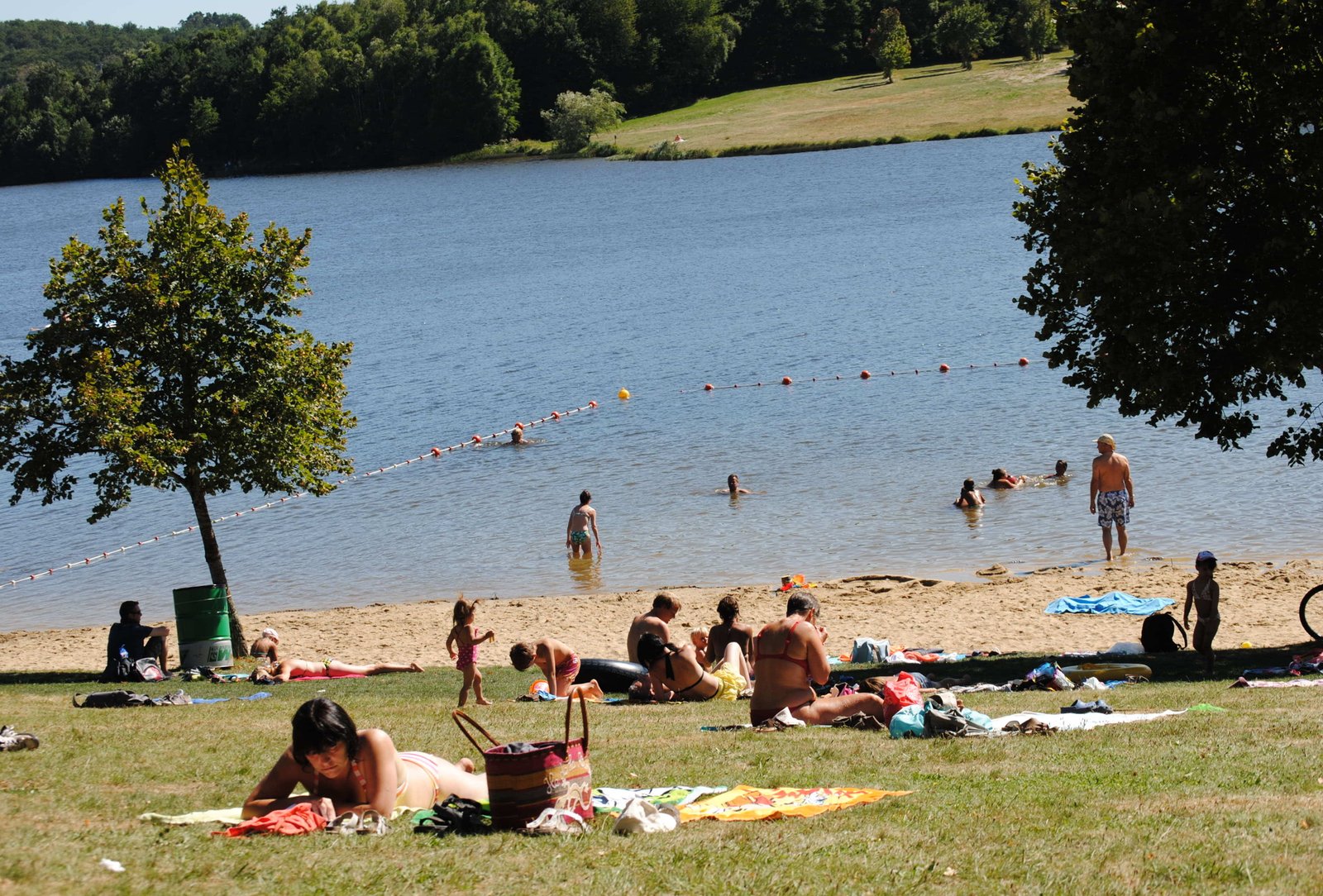 Meer in Saint Gervais Grasveld en een zandstrand rondom dit meer, zwemmen en zonnebaden, veilig pierenbadje voor de kleintjes, verhuur van waterfietsen, picnic- en barbecueplekken, bar en restaurant.
