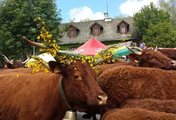 De koeien vertrekken naar de het groene gras in de bergen voor de zomer.
